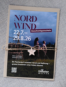 Möchten Sie bereits jetzt jemandem eine Freude bereiten mit einem Gutschein für unser Freilichttheater? Mit einer schönen Karte und einem Gutschein-Code, der sich später bei der Ticketreservation bequem einlösen lässt?